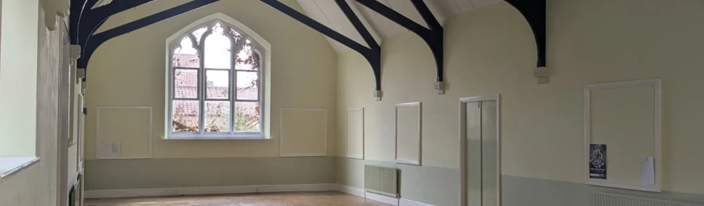 The Hall is ideal for more active events and for displays, exhibitions and open meetings. The floor space is approximately 18m x 6m. A kitchen and toilets are available and adjoin the hall.