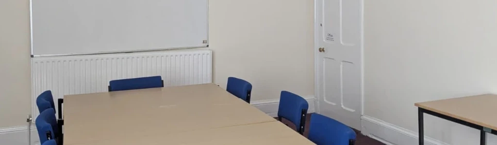 The meeting room is an ideal town centre venue for small business meetings, training, and information and advice outreach sessions run by statutory public services and charities. The furniture can be arranged flexibly to seat 18 in a board room or classroom style or 40 in a lecture theatre style. This room adjoins the café at the front of the building.